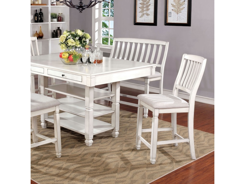 Kaliyah Transitional Style Antique White Finish 6pc Counter Height Dining Table Set W Shelves Storage Drawers In Table