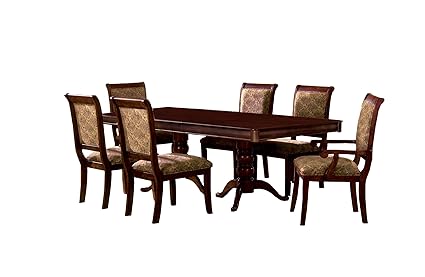 Furniture Of America Bernette 7 Piece Double Pedestal Dining Table Set With 18 Inch Expandable Leaf Antique Cherry Finish