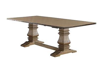 Homelegance Veltry Rectangular Double Pedestal Dining Table With Metal Nail Head Accent Banding Rustic Oak
