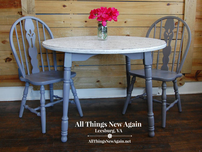 Table And 2 Chairs Dining Set Painted Gray And White Breakfast Nook Kitchen Table And Chairs Vintage Dining Set By Allthingsnewagainva