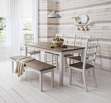 Noa And Nani Canterbury Dining Table With 5 Chairs And 1 Bench Dark Pine And White