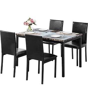 Amazon Com Mooseng 5 Pieces Dining Table Set Elegant Faux