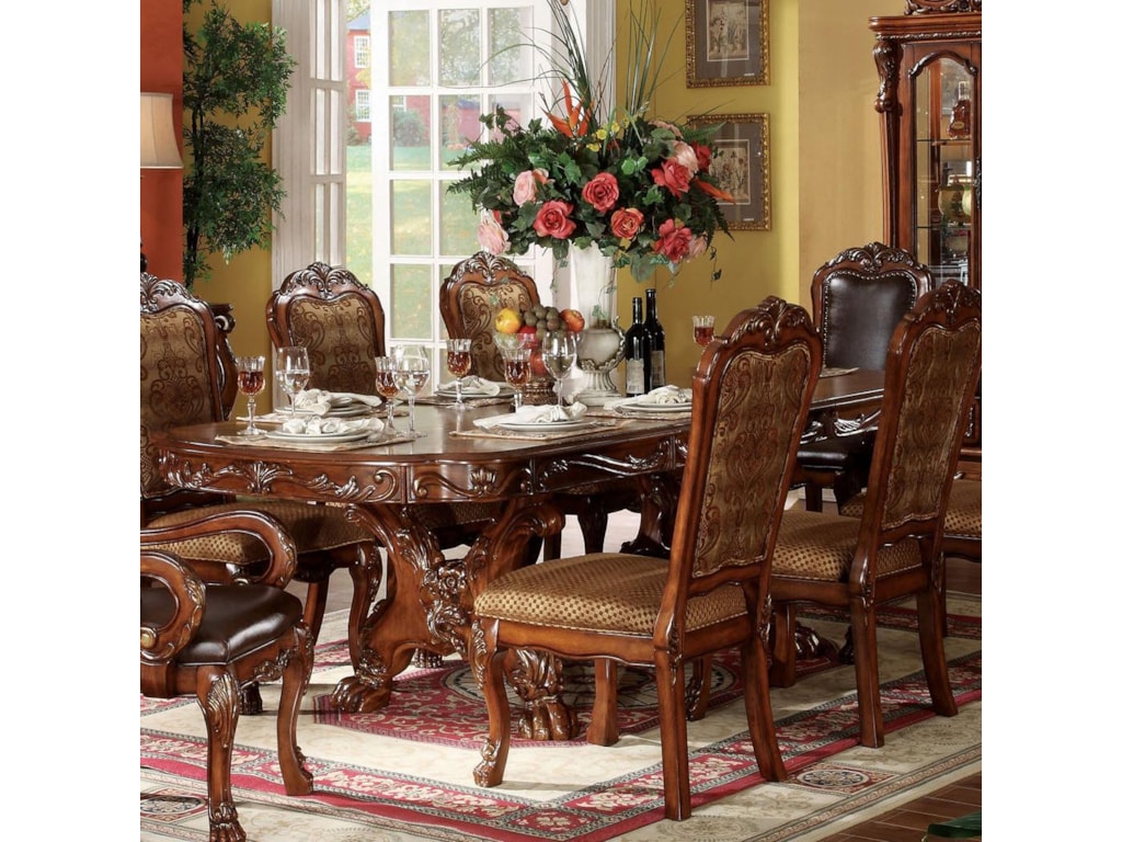 Acme Furniture Nostalgia Collection 02186t 48 Pedestal Dining Table With 24 Extension Leaf Carved Apron Claw Legs Rubberwood And Oak Wood Veneer