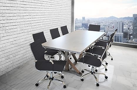 Details About Large Walnut Dining Boardroom Table 240x110 8 Black Low Backed Chairs