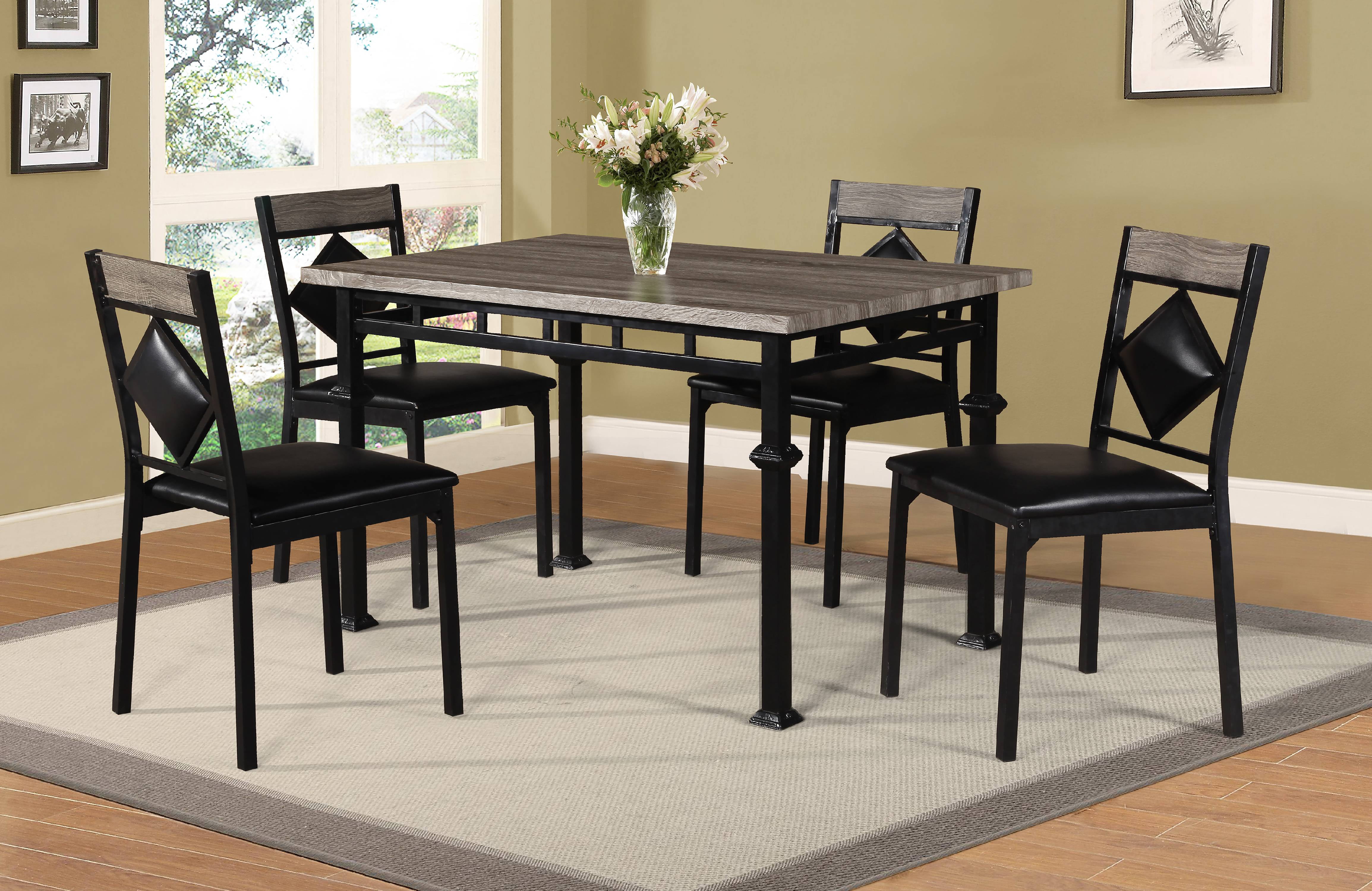 Home Source 5 Piece Mixed Media Dining Set Light Wood Grain Rectangle Table With 4 Matching Chairs