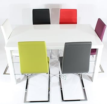 Charles Jacobs Lounge Kitchen Dining Table Set 6 Mixed Colour Chairs Thick Solid Legs White High Gloss Mdf Top 6 Seats Premium Quality