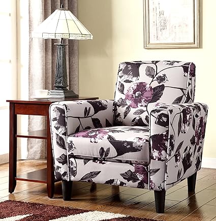 Container Furniture Direct Gilbert Collection Modern Floral Print Pattern Upholstered Living Room Accent Chair Purple White