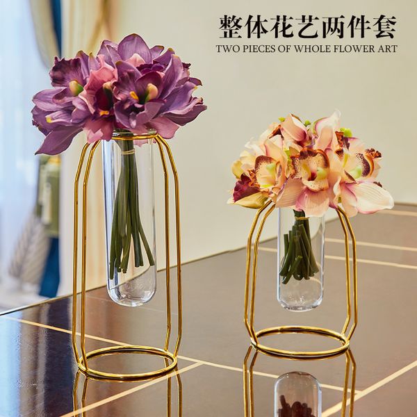 Nordic Creative Metal Glass Test Tube Flowers Vase Home Decor Crafts Room Decoration Dining Table Vase Office Study Ornament Vase Decoration Vase
