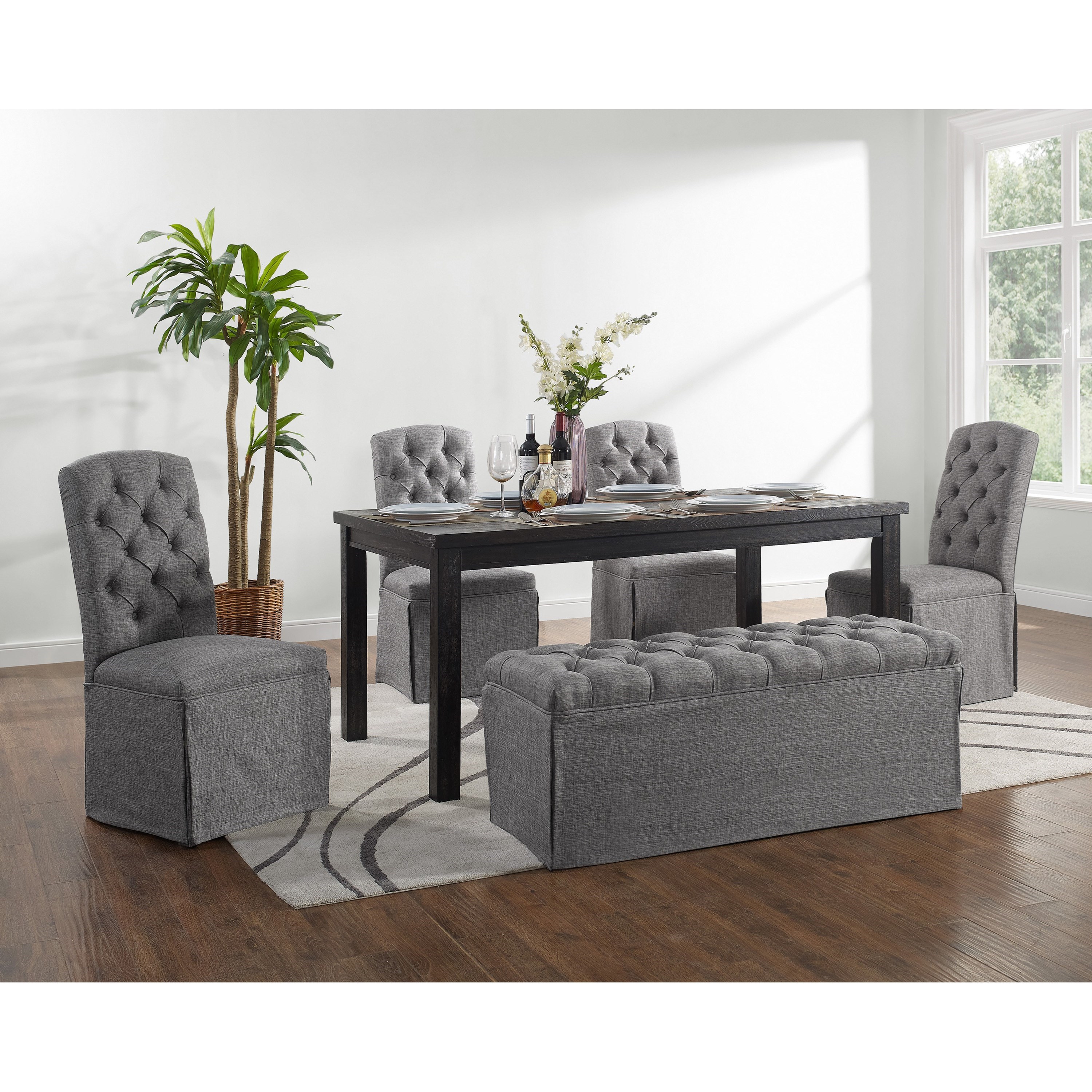 2022t 4072gy 6 Pc Palmer Dark Wood Finish Dining Table Set Upholstered Chairs And Bench