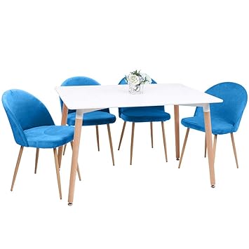 Joolihome Eiffel Dining Table And 4 Velvet Chairs Set Wood Style For Office Lounge Dining Kitchen White Rectangular Navy Blue Velvet 4