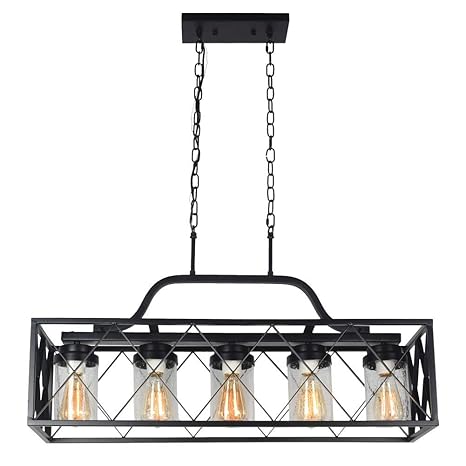 Baiwaiz Black Dining Room Chandelier Light With Clear Seeded Glass Shade Industrial Kitchen Island Chandelier Lighting Rectangle Chandelier Cage