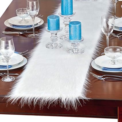 Collections Etc Elegant Winter Faux Fur Table Runner Dining Room Linens Holiday Decor For Party